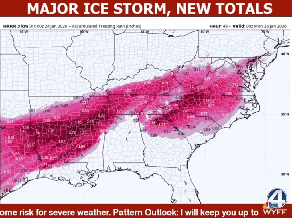 That evening, we started seeing the shift to more ice being predicted to accumulate from freezing rain. Sunday morning, we looked out our windows to find some seriously weighed down trees and power lines.