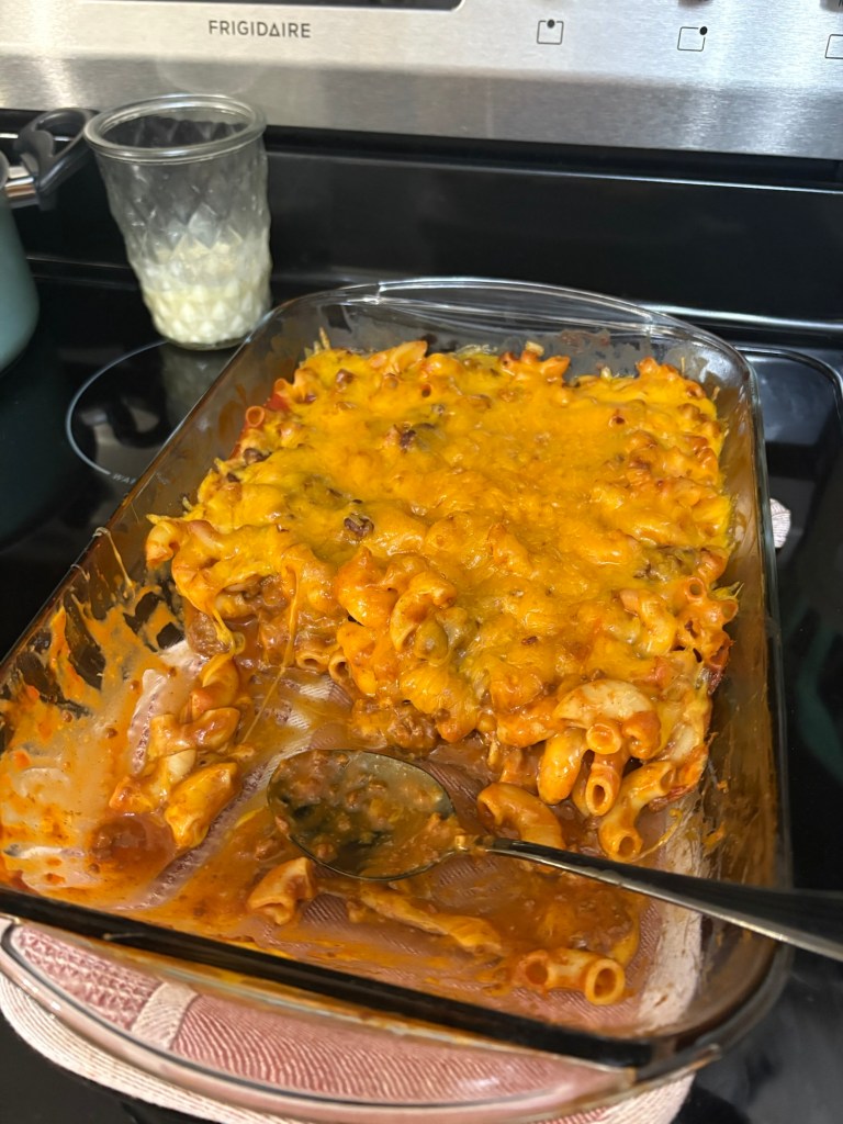 I tried a new recipe, from TikTok. They used Ramen noodles, which I substituted with cooked macaroni noodles. I drained the noodles, and poured them into a casserole dish. Then, I mixed in a can of tomato soup, and 2 cans of chili (without beans). I baked it in the oven, at 350 degrees, for about half an hour. I topped it with shredded cheddar cheese, popped it back in the oven for about 5 minutes, and it was ready. My family gobbled it up! Mj says it reminds her of canned ravioli, and Adam asked me to add that to my cookbook, so I can make it for supper again.