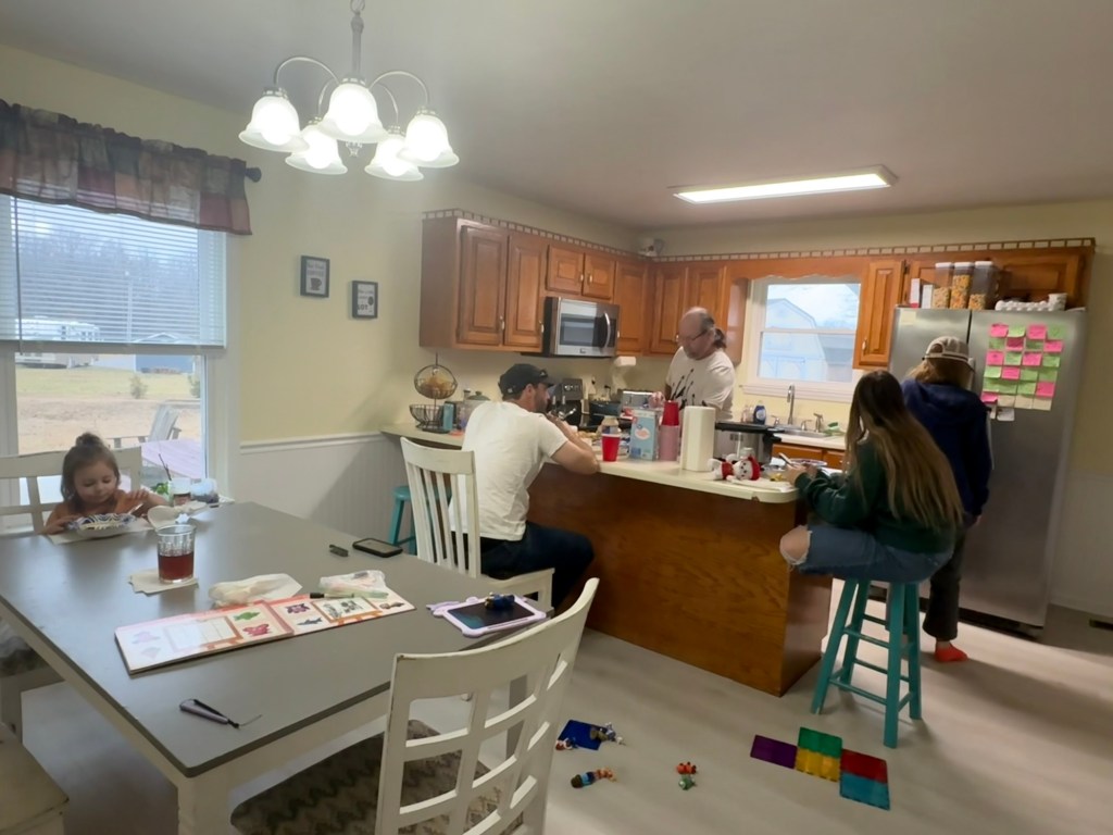 I come home sometime between 12:30-1:30 for my lunch break. I hang out with my kids for awhile, before it’s time to get back to work.