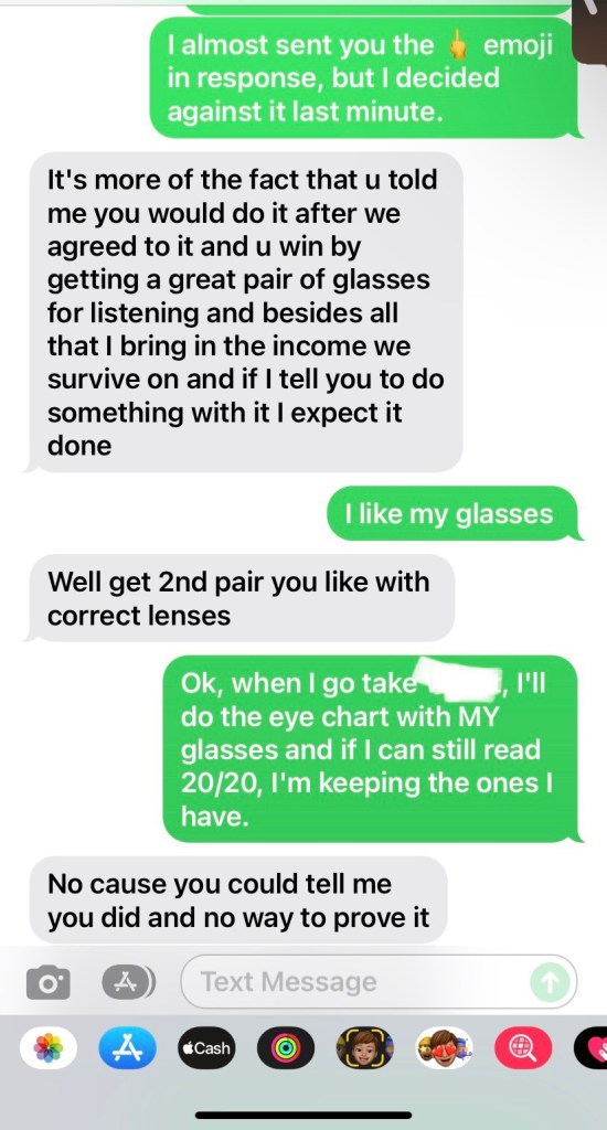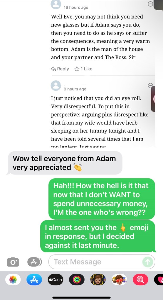 2. ^^ what Nora said! You just need to submit and obey, regardless of the why. Maybe you are right… that you don’t need new glasses, but is it really worth the fight? And the disobedience? And the sore ass?!? I think not!