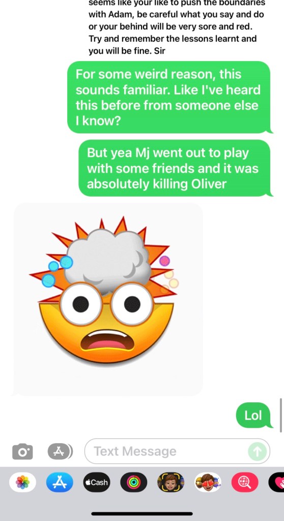 It’s always so foreign to me, when I see this side of Adam. He’s never directed it toward me. I get rare glimpses into this part of my husband. Even angry Adam is always careful and considerate of me and my feelings. Angry Adam is not like that, with anyone else. Our kids, of course, but outside of his immediate family, he’s kind of scary. I’M not afraid of him. I’ve seen the scars on his knuckles from his younger, wild, “don’t give a shit” days. I’ve seen him put some people in their places. I’ve overheard him chewing out someone at work. He pocket dialed me once, while he was at work, and holy moly… He hasn’t yelled at Jackie, or been cruel. He just isn’t willing to be very nice to her. That’s hard for me to see.