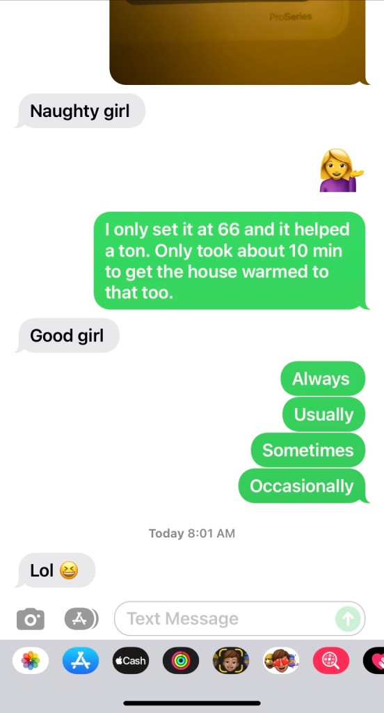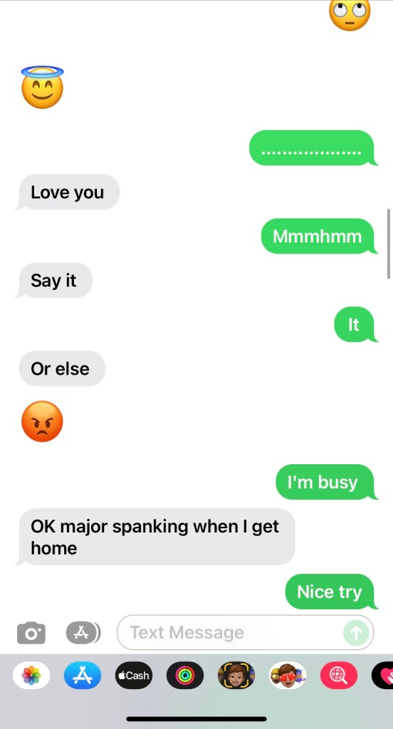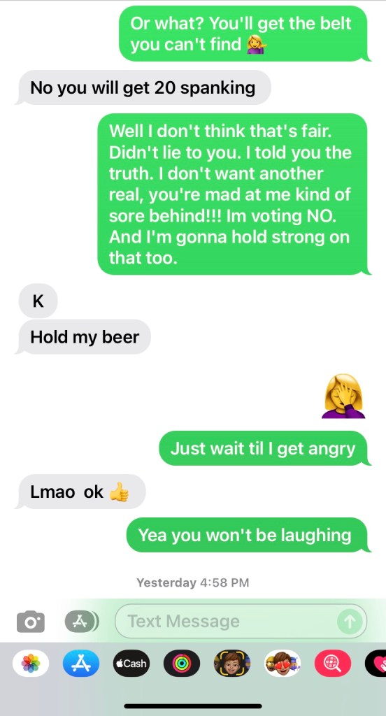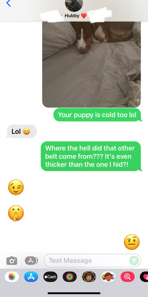 I worry that maybe Adam will start to pay too much attention. Maybe he’ll start to see things in me that he can’t “fix”. I understand that I’m never going to be perfect. That’s impossible. I just worry that my imperfections will be so highlighted, he’ll think I’m too much. These are my thoughts when I have to tell him I did something that I know he isn’t going to be happy about. Well, I think about what he’s going to do, too. Like, how mad is he, really? Am I going to have to sleep on my stomach? Is he just trying to scare me, and my ass is fine? Did I fuck up so bad, that now he’s just done trying? He can assure me every five minutes that he won’t give up on me, and it still doesn’t seem to change this thought process for me. We were trying to figure out an approximate amount of times we’ve had sex, the other night. We guessed somewhere around 4,000 times. Even still, sometimes, I worry that he won’t find me attractive. So, by that logic, I may screw up and get 4,000 spankings and still be afraid he’s going to get tired of my bullshit!