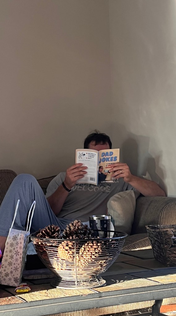 Adam reading the book he got from the kids ๐Ÿ˜†