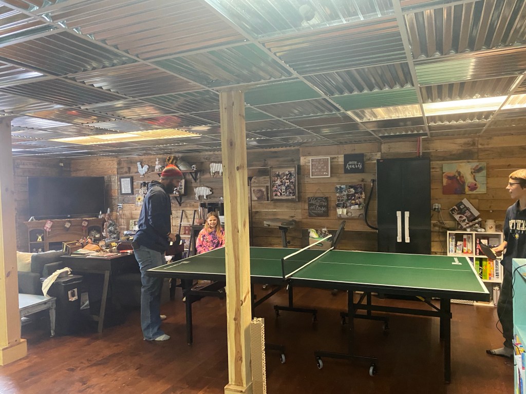 Sunday, we went out driving around in Adam’s truck again, and played around in the snow. We got the ping pong table all set up. It was a blast hanging out downstairs playing ping pong with Jackie and the kids!