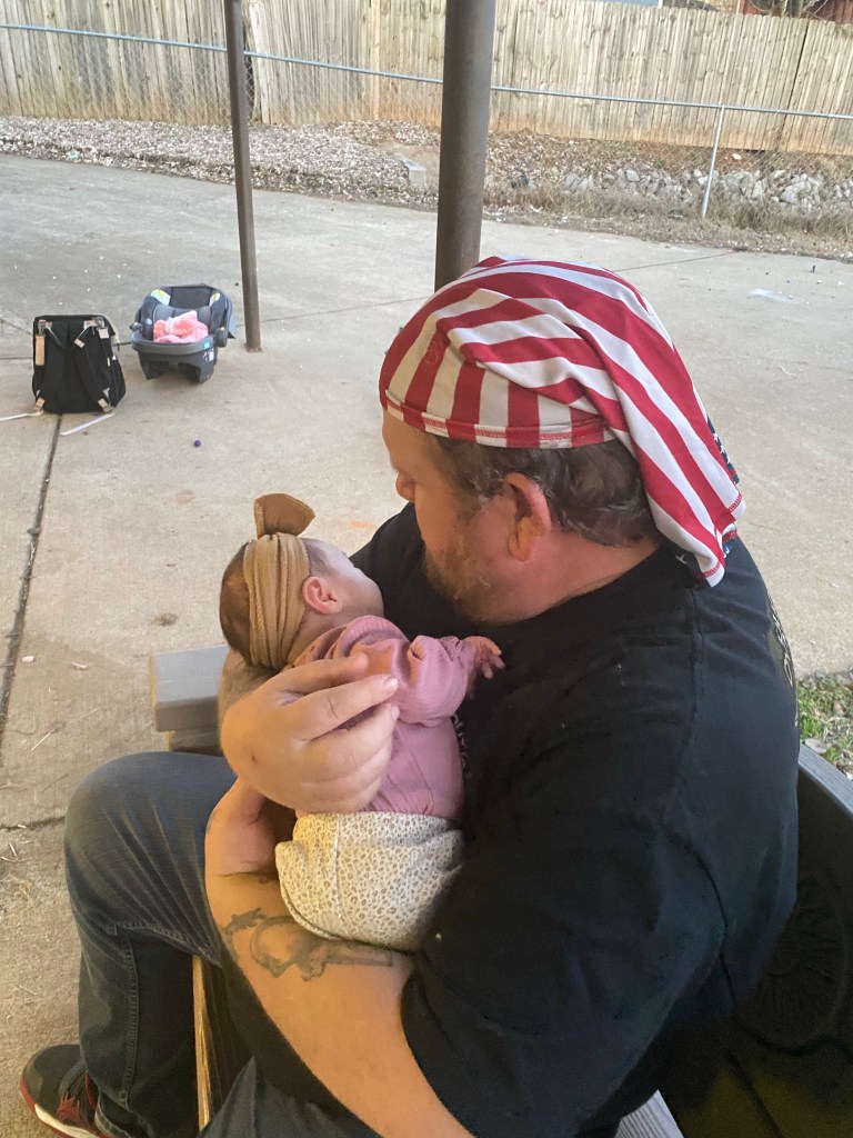 My sweet babies, right before he picked her up and showed off his wrestling moves 😆