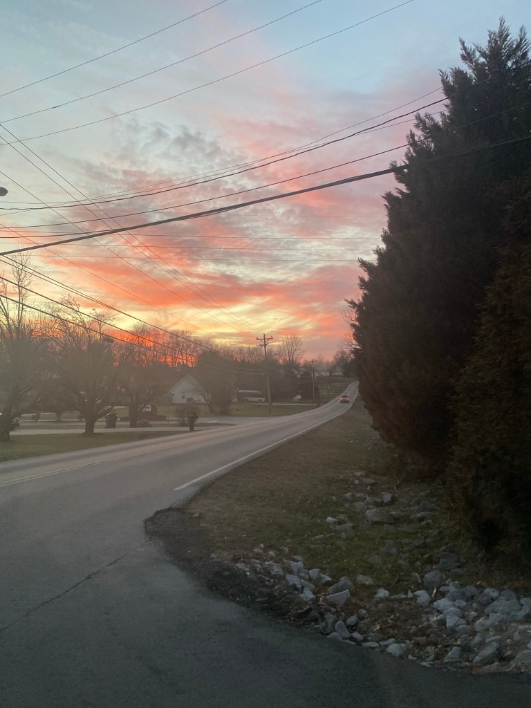 I took a picture of the sky, when we were leaving for Poppy’s house, last night. It was gorgeous.