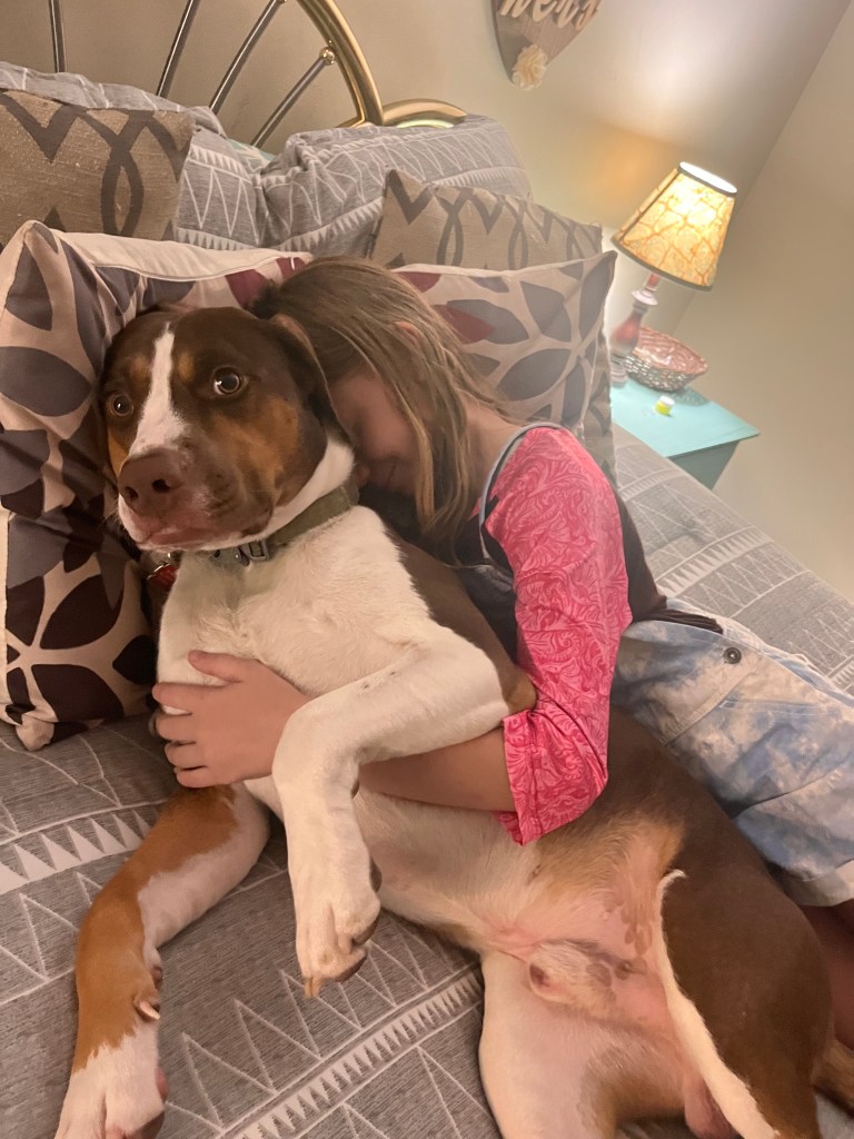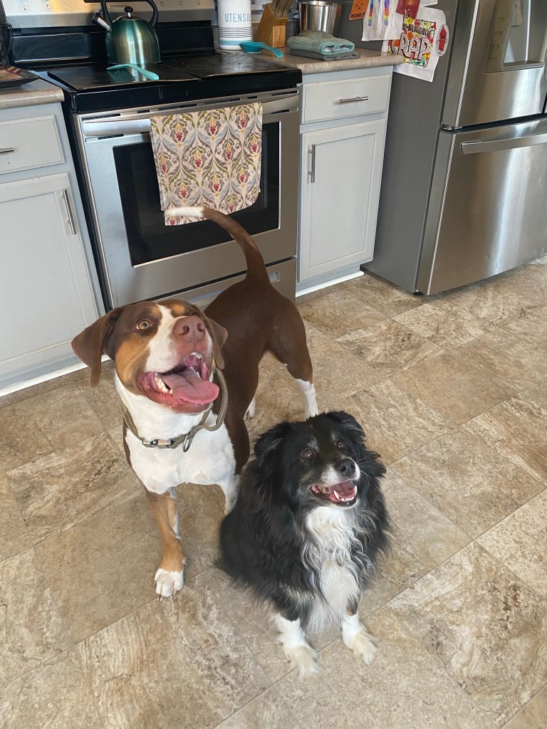 After our walk, Mj was giving them treats 🙂Mj and Oliver are great friends! He jumps on the trampoline with her, they play “tag”, go exploring the backyard, and play lots of other games together ❤️