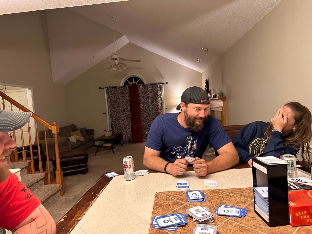 We played games downstairs, with the kids. After they went upstairs, Justin, Jackie, Adam, and I played ping pong awhile. Then, we went up and played a card game. Adam and Wyatt are outside cutting the grass. I ran a couple errands, and now waiting for Justin and Jackie to get here. We’re going to sit outside, hang out, play cornhole, and then find some mischief (as usual).