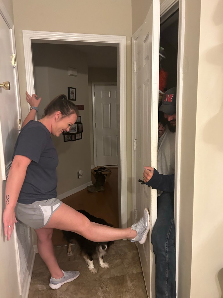 Jackie was teasing Adam and Justin, trying to hold the door closed 😆