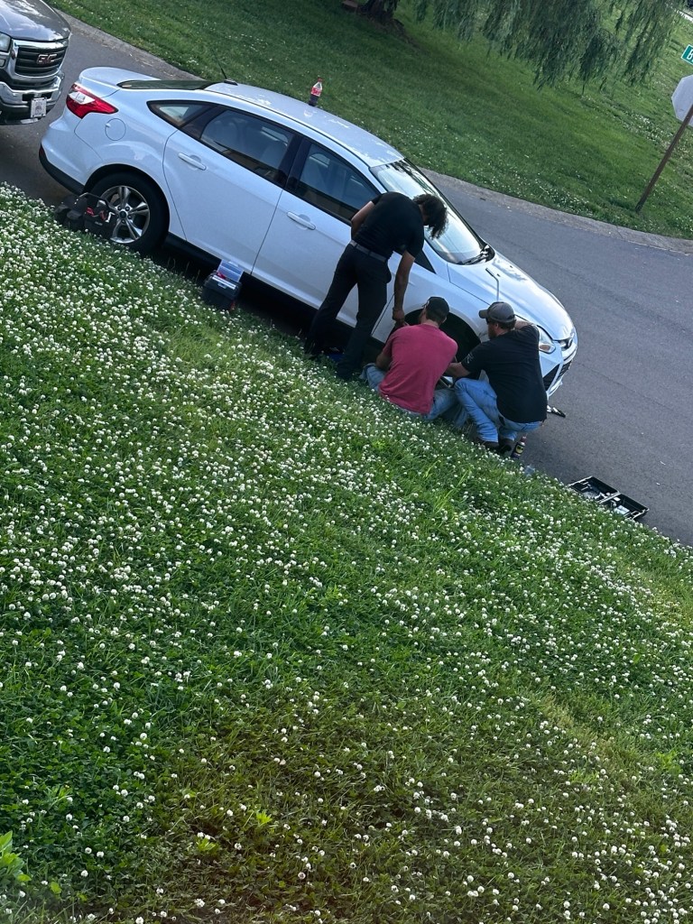 Justin and Adam changed out the brakes, on Mikayla’s car, this afternoon. Well, Mikayla’s boyfriend helped, too.