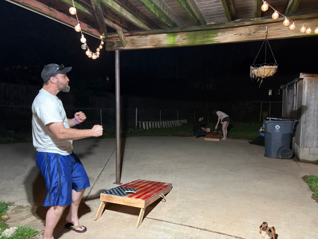 Brooklyn and Mj rode to Knoxville, with Jan-gee, this weekend. They all hung out with Mikayla there. It was just Adam and me at home, all weekend! He asked me to go outside to play cornhole with him, last night. We had a real good time. It was nice to spend time together, talking and laughing.