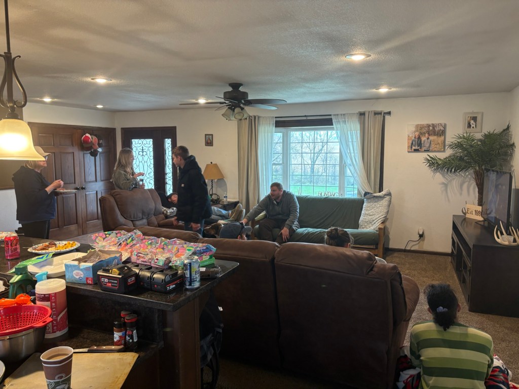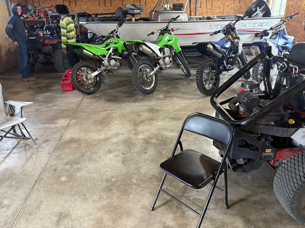 We spent Easter weekend with Adam’s family, in Kansas. It was the first time he’d seen his mom, since they were here over Thanksgiving. That was before the cancer diagnosis. She’s very pale, and tires easily, understandably. She wore a blonde wig with a baseball cap, and I actually think it’s adorable on her. We stayed in a hotel. The kids (Mikayla, Jandrel, Brooklyn, and Mj) had one room, and Adam and I had another. We spent the days over at his brother’s house. His mom and his other brother joined us out there, everyday. It was hot as heck here in Tennessee, the day we left. We arrived in Kansas wearing tank tops and shorts, and it was only 38 degrees there! The weather was cold and cloudy the entire time we were there, but everyone still had some fun. Jandrel had a blast trying out dirt bikes and shooting guns.