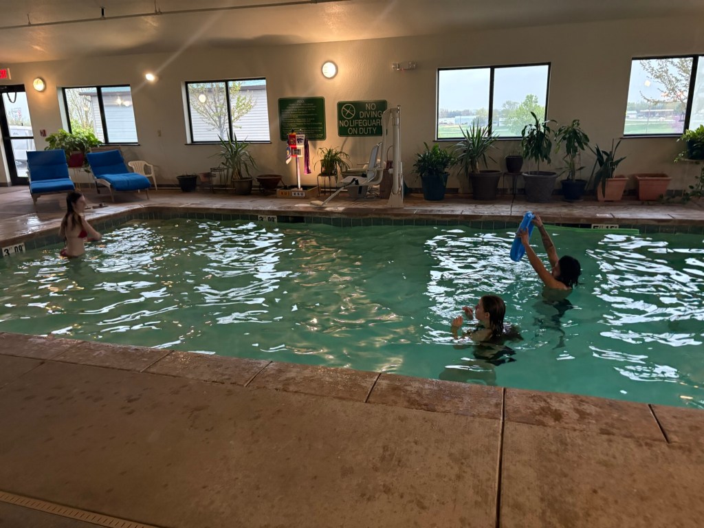 On our last night there, Jan-gee, Mikayla, and B had some fun in our hotel pool. Adam and Mj played poker with his brothers and our niece and nephew, instead of swimming.